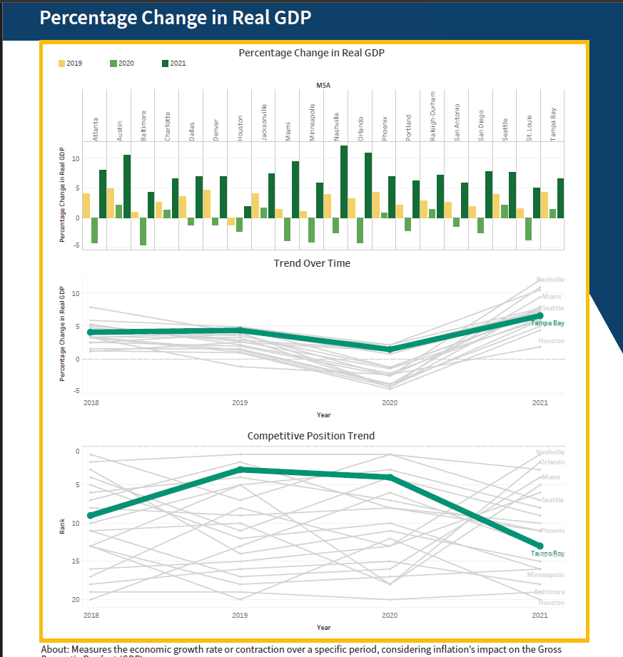 This project leverages advanced data analysis and machine learning techniques to assess affordability and talent availability in the Tampa Bay area and other MSAs. Data is sourced from various reliable providers, including the U.S. Census Bureau and Bureau of Labor Statistics, to calculate metrics such as median home price, grocery price index, healthcare costs, and labor force participation rate. The analysis is performed using tableau.